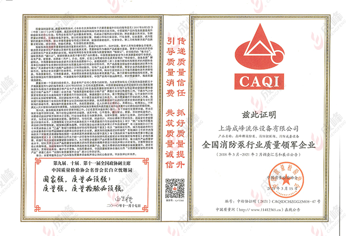 全國消防泵行業(yè)質(zhì)量領(lǐng)軍企業(yè)